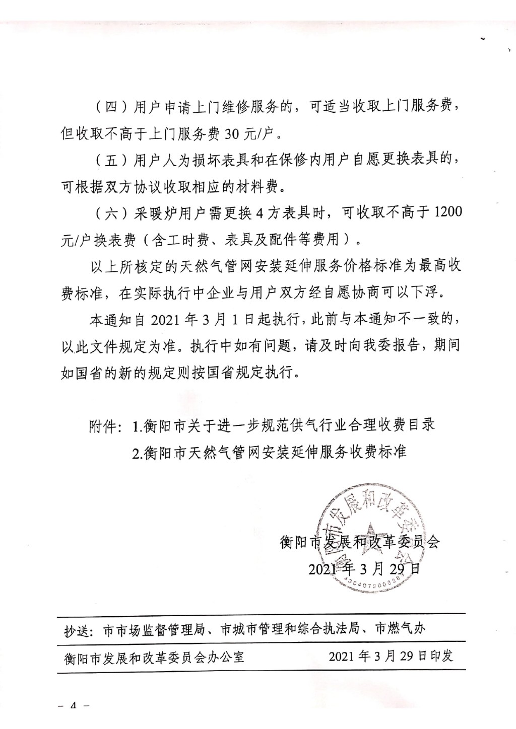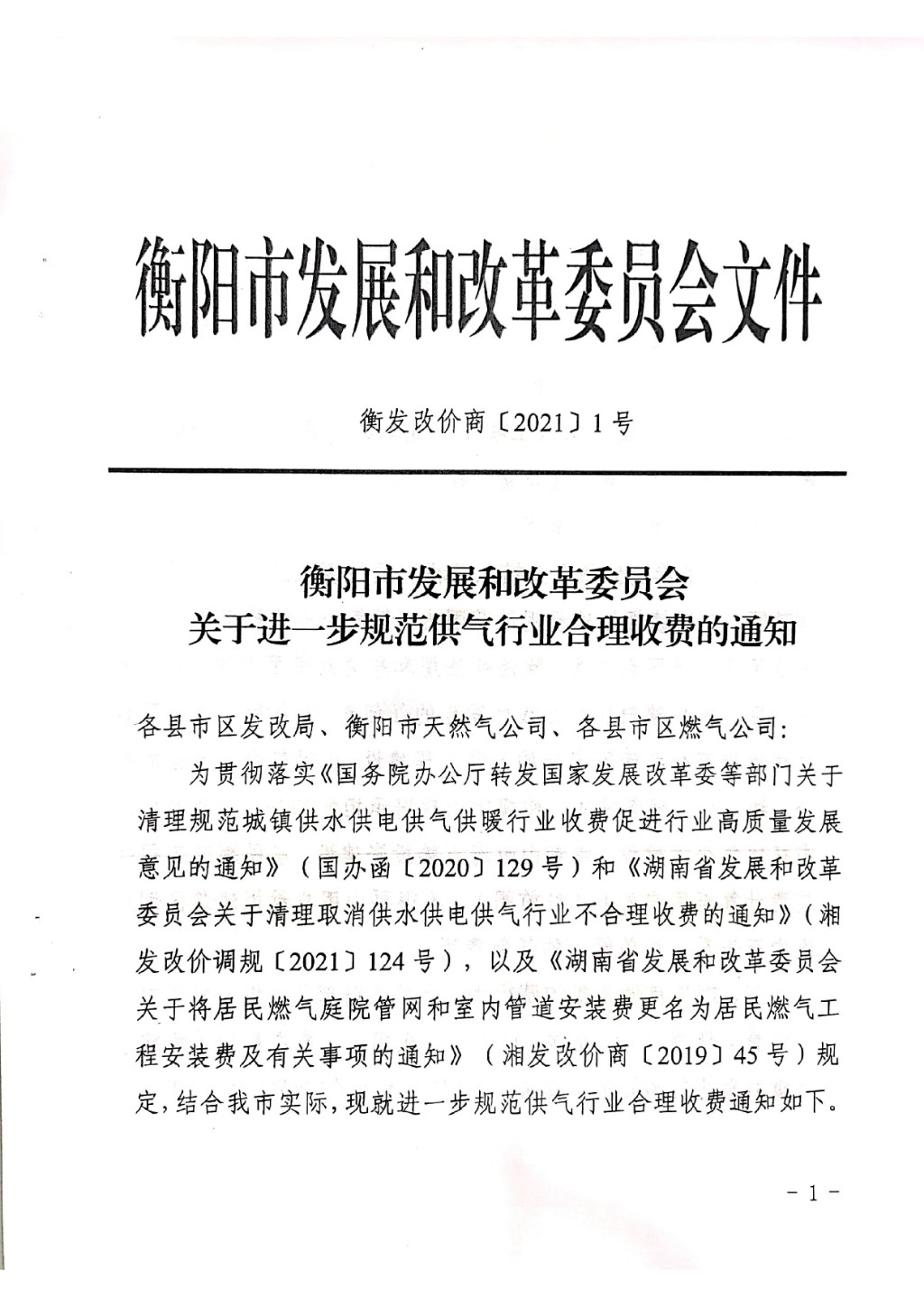 衡發(fā)改價(jià)商【2021】1號(hào)關(guān)于轉(zhuǎn)發(fā)《衡陽(yáng)市發(fā)展和改革委員會(huì)關(guān)于進(jìn)一步規(guī)范供氣行業(yè)合理收費(fèi)的通知》的通知